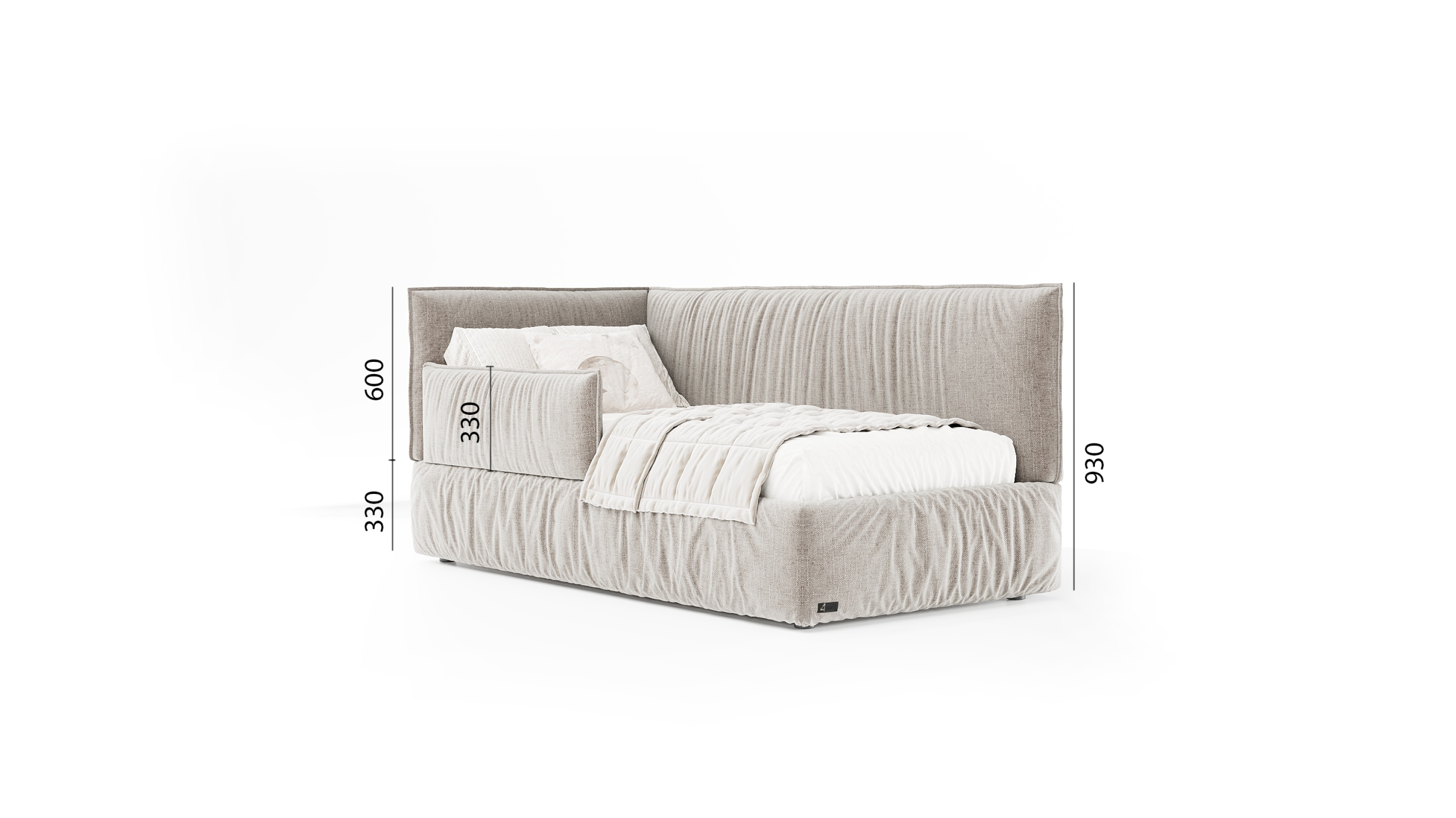 Особливість дизайну: мʼяке обʼємне оформлення по всьому периметру, вертикальні прострочки